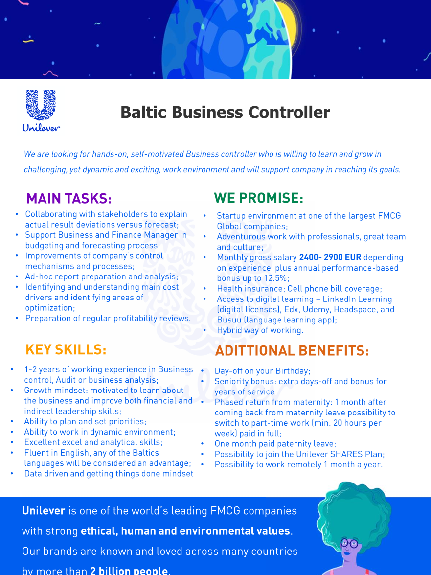 Papildoma informacija: depending on experience, plus annual performance-based bonus up to 12.5%.