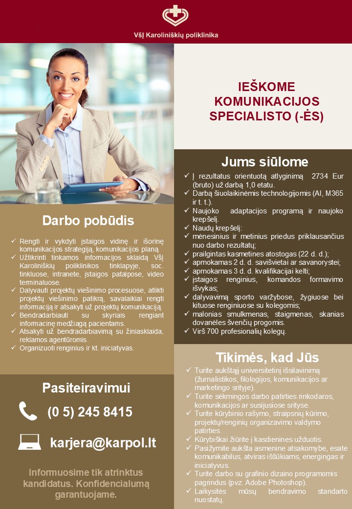 VšĮ Karoliniškių poliklinika yra viena didžiausių poliklinikų Vilniaus mieste, savo veiklą vykdanti jau daugiau nei 40 metų. Nuėję ilgą permainų kelią, šiandien džiaugiamės iš pagrindų pasikeitusia mūsų infrastruktūra, stipriais specializuotais skyriais, unikaliais IT sprendimais. Viešajame sektoriuje esame žinomi kaip novatoriškų projektų iniciatoriai, kurių idėjomis seka ir kitos sveikatos priežiūros įstaigos.