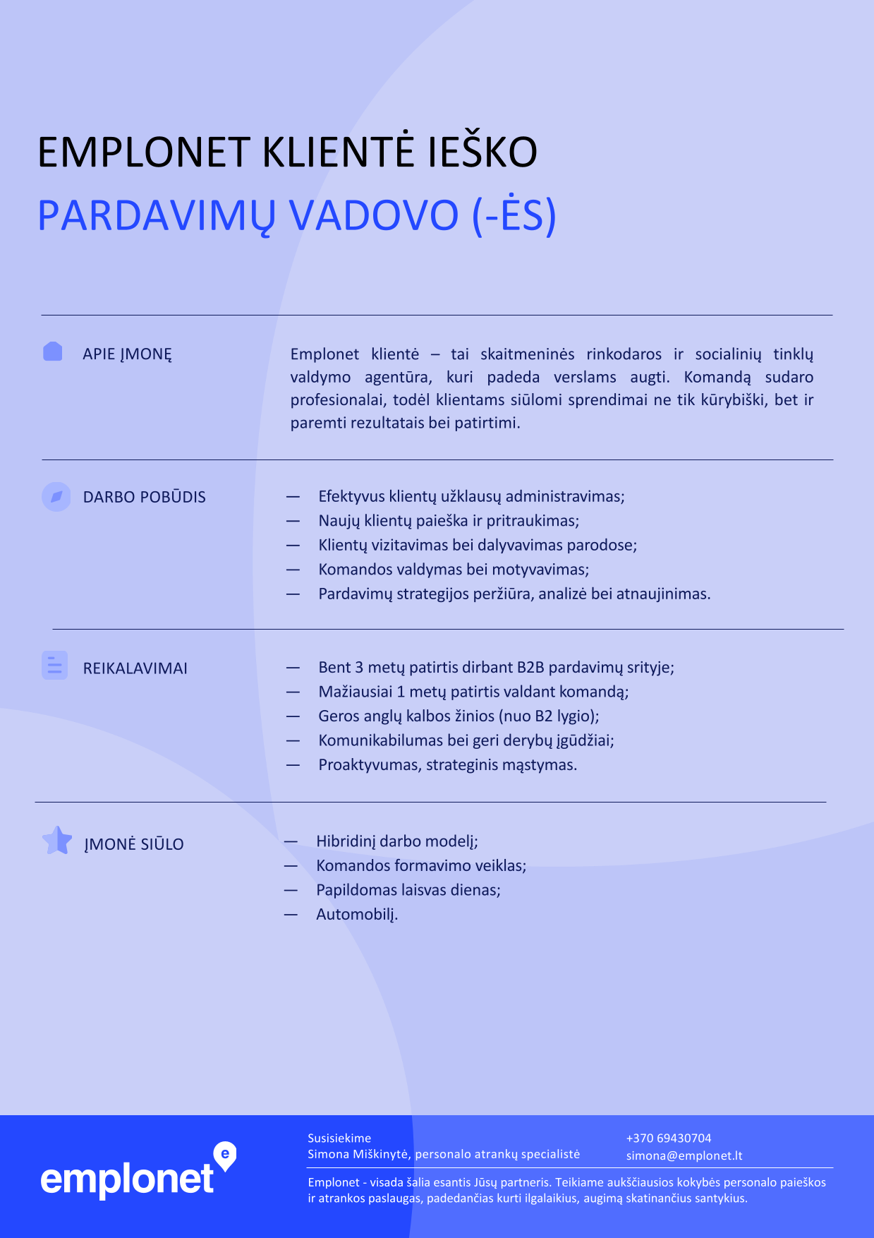 Emplonet - visada šalia esantis Jūsų partneris. Mes teikiame aukščiausios kokybės personalo paieškos ir atrankos paslaugas, padedančias kurti ilgalaikius santykius, skatinančius verslo augimą bei įvairių sričių specialistų tobulėjimą.
