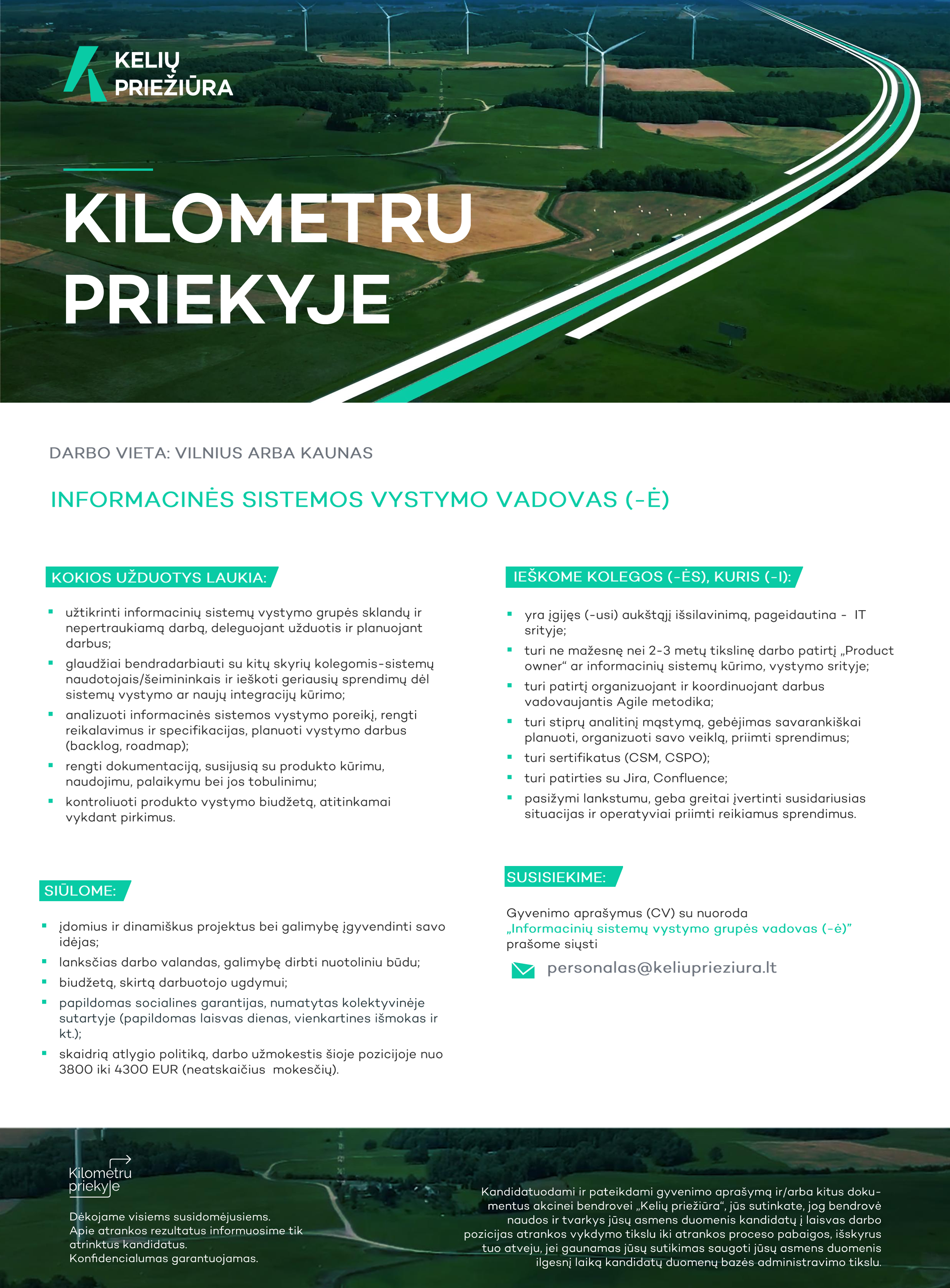 Papildoma informacija: Konkreti darbo užmokesčio suma siūloma atsižvelgiant į kandidatės (-o) kompetencijas ir lūkesčius.