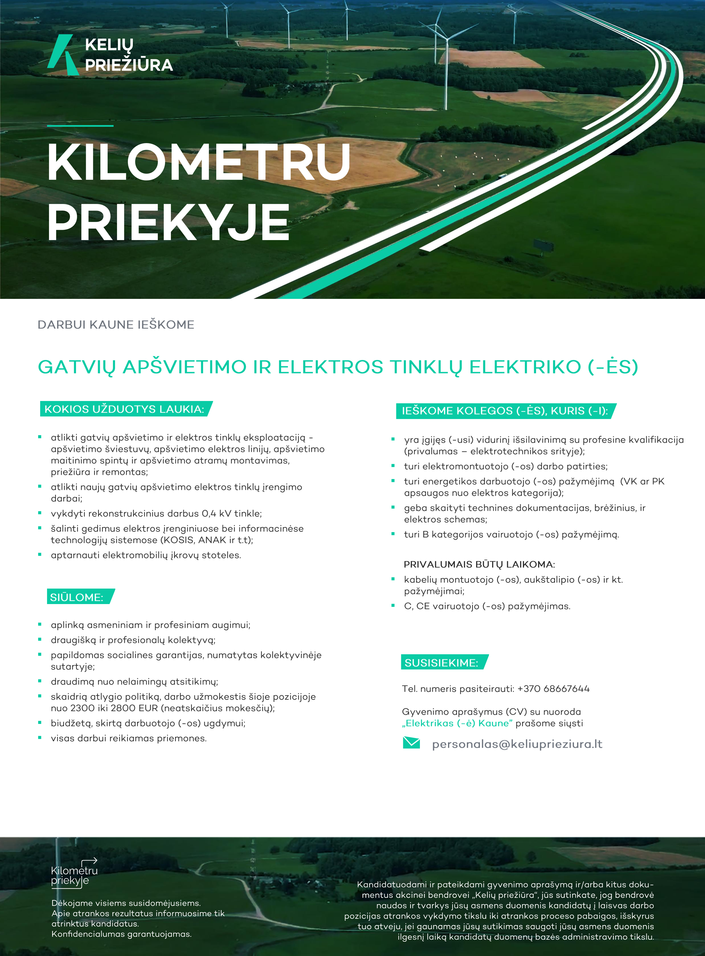 Kandidatuodami ir pateikdami gyvenimo aprašymą ir/arba kitus dokumentus akcinei bendrovei Kelių priežiūra, jūs sutinkate, jog bendrovė naudos ir tvarkys jūsų asmens duomenis kandidatų į laisvas darbo pozicijas atrankos vykdymo tikslu iki atrankos proceso pabaigos, išskyrus tuo atveju, jei gaunamas jūsų sutikimas saugoti jūsų asmens duomenis ilgesnį laiką kandidatų duomenų bazės administravimo tikslu.